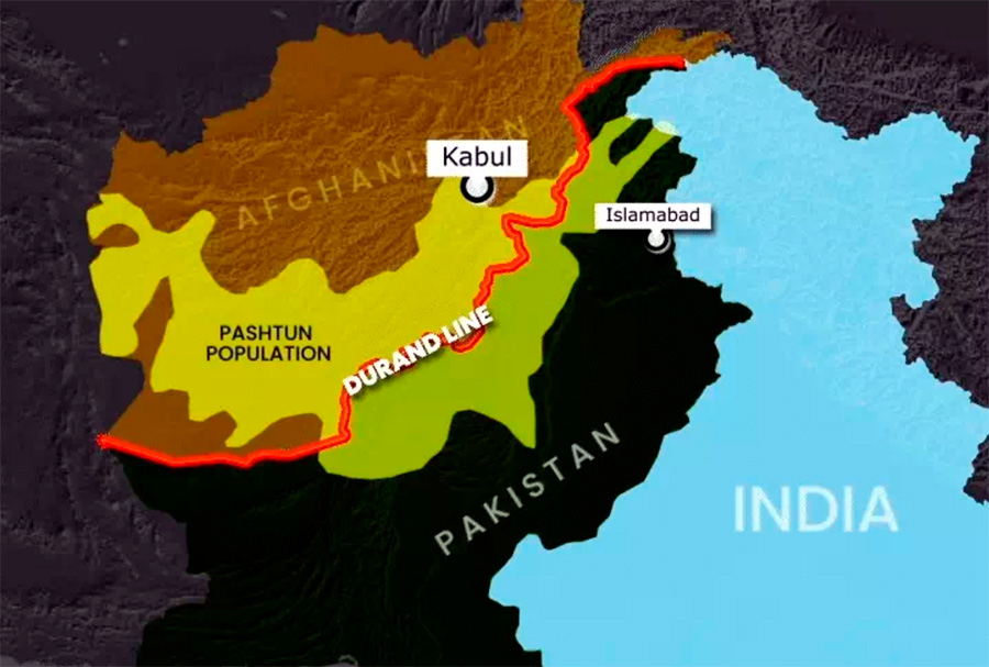 Ikki musulmon mamlakati o‘rtasidagi hozirgi qarama-qarshilikning ildizlari mintaqaning mustamlaka tarixiga borib taqaladi. 1893 yili Afg‘oniston va Britaniya Hindistoni o‘rtasida chegara o‘rnatilgan, unga hozirgi Pokiston hududlari ham kirgan. Bu Dyurand chizig‘i deb nomlangan bo‘lib, Afg‘oniston amiri Abdurahmon Xonni xalqaro chegaraga rozi bo‘lishga ko‘ndirgan Britaniya Hindistoni Tashqi ishlar vaziri Genri Mortimer Dyurand sharafiga nomlangan. Bu «chiziq» kamida 2640 kilometrga cho‘zilgan. O‘sha davrdagi mustamlakachilik odatlariga muvofiq, chegara mahalliy xususiyatlarni, xususan, bu hududlarda an'anaviy ravishda pushtun qabilalari yashagani e'tiborga olinmagan. Natijada, Dyurand chizig‘i qarindosh jamoalarni ikkiga bo‘lib, mavjud aloqalarni buzgan va oxir-oqibat vaqt kelib portlaydigan bombaga aylangan.